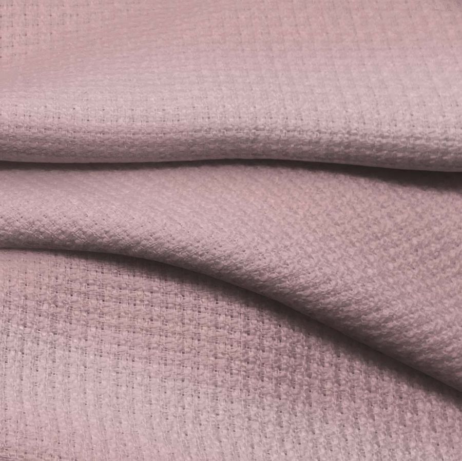 La tela base Tweed-Chanel es un tejido de poliéster con un gramaje de 420 gr/m2 y una composición del 100%. Su ancho es de 150 cm y está impreso en un rosa combinado con el color RosyBrown, cuyos valores en CMYK son 18, 38, 25 y 3 respectivamente.