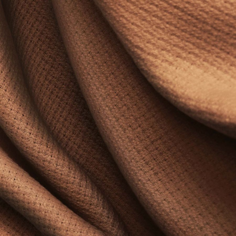 La tela base es un tweed de poliéster con un gramaje de 420 gr/m2 y un ancho de 150 cm. El color liso impreso, llamado Panaderos Marrón, es un tono marrón con un CMYK de 40 66 78 56. Se trata de una tonalidad cálida y versátil que combina perfectamente con otros tonos tierra y colores neutros.