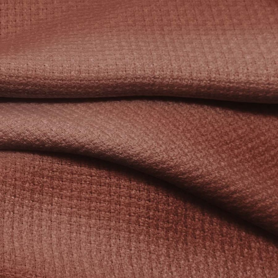 La tela base es un Tweed de Chanel, compuesta por 100% poliéster, con un gramaje de 420 gr/m2 y un ancho de 150 cm. El color liso impreso sobre esta tela es Marrón Sepia, con un CMYK de 34 69 68 42, lo que lo convierte en un tono cálido y suave. Este color combina perfectamente con gamas tierra, verdes oscuros, rojos oscuros y ocres, añadiendo una sensación vintage y elegante.