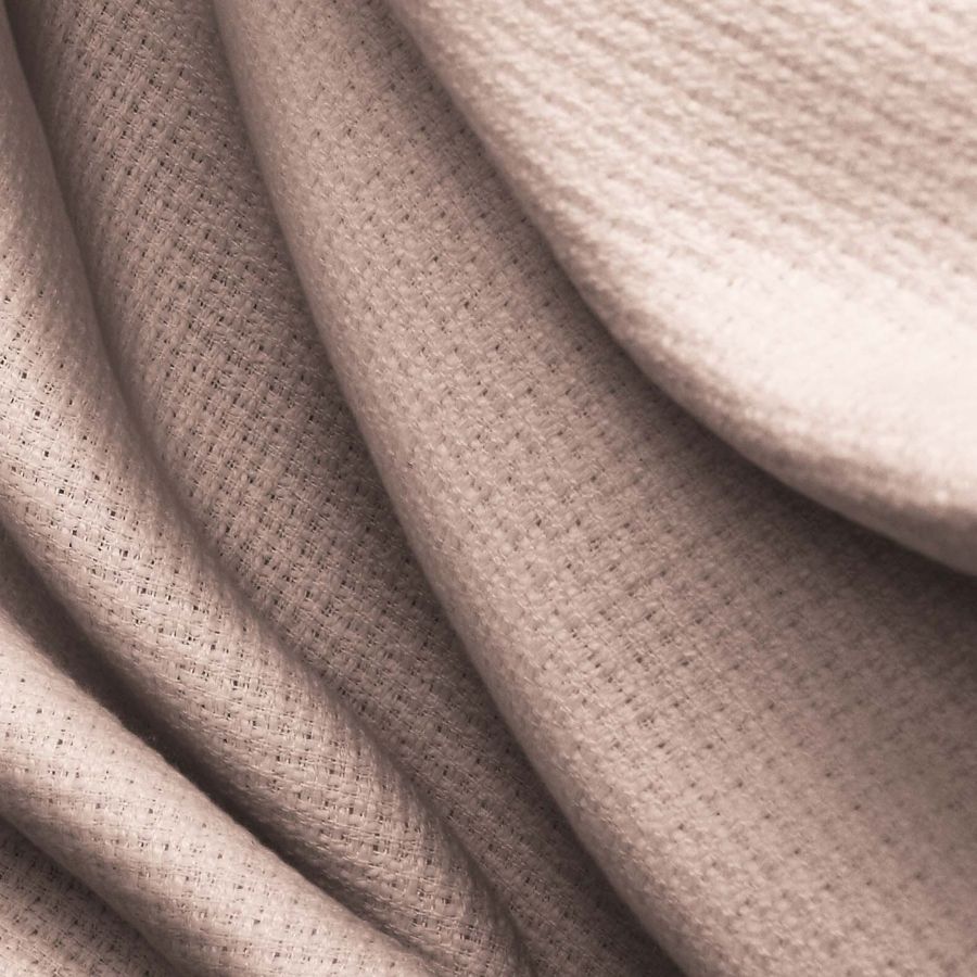 Se trata de un tejido con relieve y al ser impreso presenta fuerza de color en las fibras más externas quedando en su color natural las fibras internas. Puede presentar pequeñas trazas, hilos o borra dada su naturaleza reciclada y cuya aparición, aunque se de en un % bajo de ocasiones, es totalmente arbitraria e inevitable. |