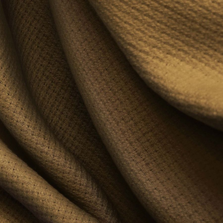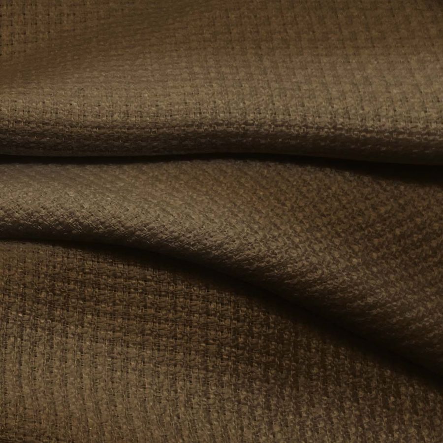 La tela base es Tweed - Chanel, una tela de tweed compuesta al 100% de poliéster, con un gramaje de 420 gr/m2 y un ancho de 150 cm. El color liso impreso en este tejido es marrón moca, con un CMYK de 51 63 89 68. Este color moca simboliza la elegancia y sofisticación, y técnicamente combina con tonos beige, marrones oscuros y tonos tierra. Es importante destacar que la tela está impresa con el color liso a una sola cara por impresión digital textil, lo que significa que no es un tejido tintado, sino impreso por una sola cara.