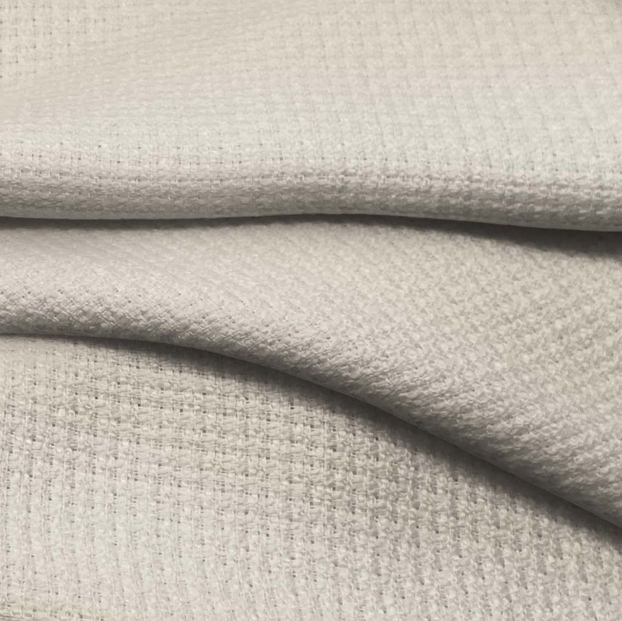 La tela base Tweed - Chanel es un tejido de composición 100% POLIÉSTER con un gramaje de 420 gr/m2 y un ancho de 150 cm. Presenta un color liso impreso en tonalidades de Crudo y Champán, correspondiente a un CMYK de 9 12 21 0. La combinación de estas tonalidades crea un efecto elegante y sofisticado que otorga un estilo sutil y naturalmente sofisticado. El color secundario, el Champán, es un tono cálido y suave que puede combinarse magníficamente con tonalidades cálidas como el marrón oscuro, el rojo vino o el verde bosque, así como con tonos más claros como el beige o el crema.