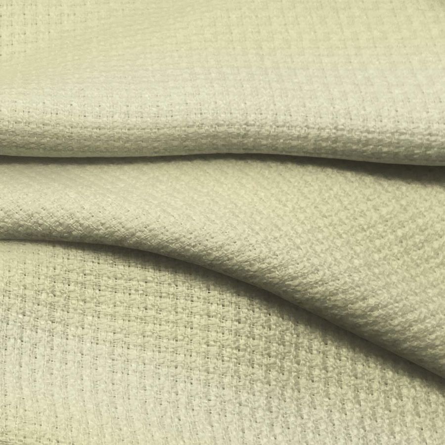La tela base Tweed Chanel, compuesta al 100% de poliéster con un gramaje de 420 gr/m2 y un ancho de 150 cm está impresa con un color liso de tonalidad crudo-pergamino. El color secundario de este tejido es un vibrante amarillo con tonos mostaza, que se combina perfectamente con tonos grises y marrones. Cabe destacar que este tejido está impreso con el color liso a una sola cara por impresión digital textil, lo que significa que no es un tejido tintado sino impreso únicamente en una de sus caras.