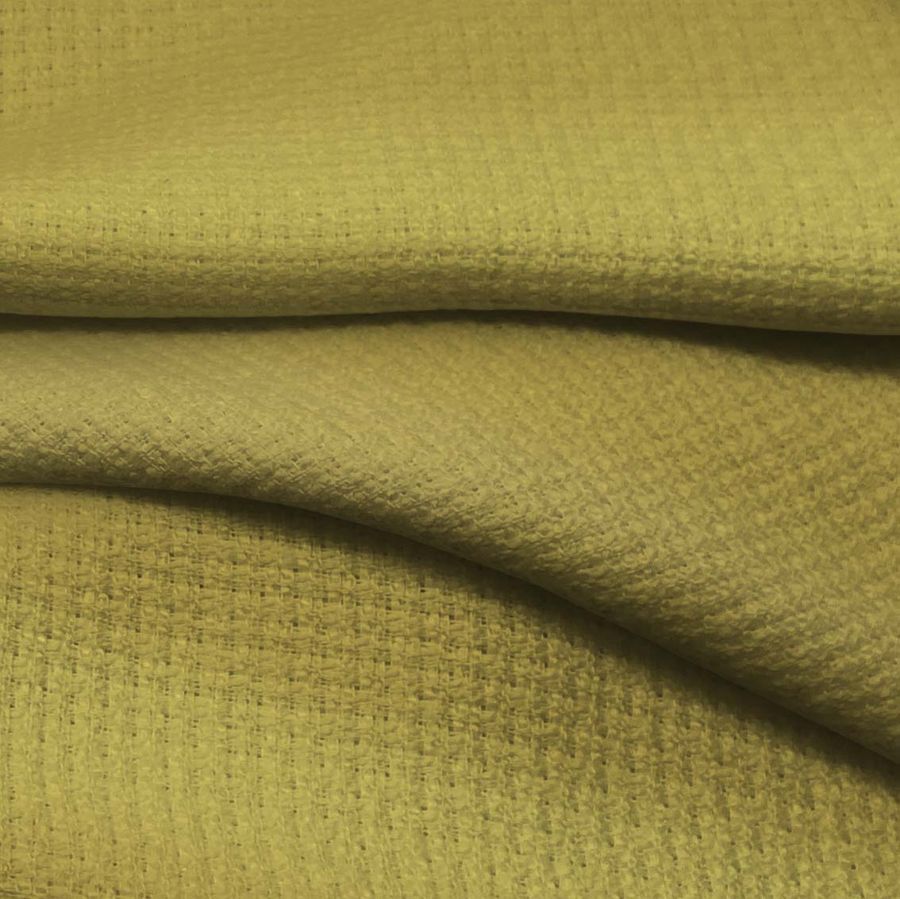 La tela base de este tejido Atemporal de Tweed-Chanel es de composición 100% poliéster, con un gramaje de 420 gr/m2 y un ancho de 150 cm. Posee un tacto rígido y una textura característica del tweed, lo que le da un aspecto de elegancia y distinción. El color liso impreso es una combinación de verde y marrón orgánico, con un contenido de CMYK de 33 31 79 13, lo que le aporta una sensación de conexión con la naturaleza, otorgándole una gran versatilidad para combinar con otros tonos terrosos y verdes.