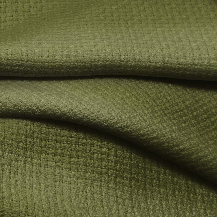 La tela base Tweed - Chanel de 100% poliéster tiene un gramaje de 420 gr/m2 y un ancho de 150 cm. El color liso impreso es un verde tierra con un valor CMYK de 61 45 88 41, lo que le otorga una sensación de naturaleza y maravillas terrenales. El verde se combina especialmente bien con tonos como el beige, marrones, amarillos, azules y blancos.