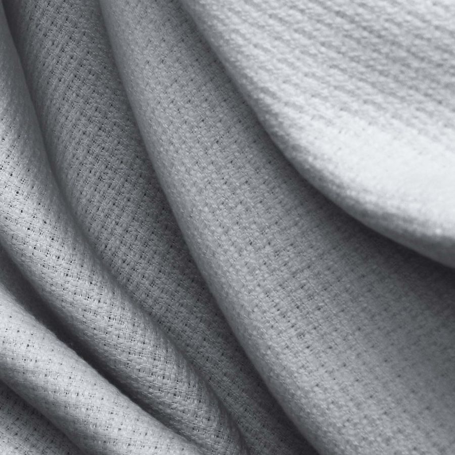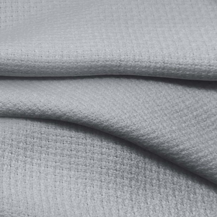 La tela base del Tweed Chanel es un tejido de tweed 100% poliéster que pesa 420 gr/m2 y que mantiene un ancho de 150 cm. El color liso impreso en ella se compone de tonalidades de gris y gris rata con un CMYK de 34 24 21 3. Este color transmite una sensación de sobriedad y elegancia.