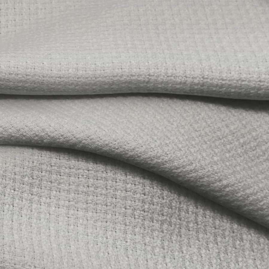 La tela base, Tweed - Chanel, es un tejido de poliéster con un gramaje de 420 gr/m2 y una anchura de 150 cm. El color liso impreso en esta tela es un tono gris oscuro con un CMYK de 27 20 25 2. Este color transmite elegancia y seriedad, lo que lo hace ideal para prendas formales. El gris combina bien con colores como el blanco, negro, rojo y azul oscuro.