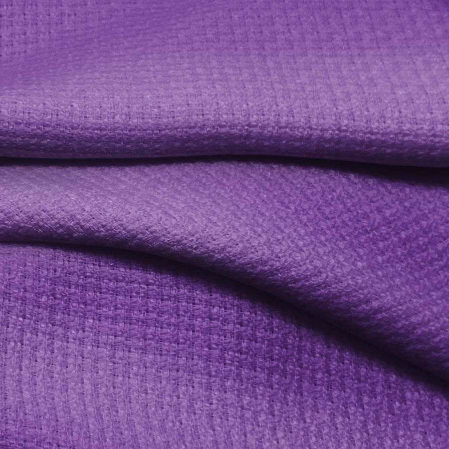 El Tweed - Chanel es un tejido de tweed de poliéster de 420 gr/m2 y 150 cm de ancho. Su color liso impreso es Iris Morado con una composición de tinta CMYK de 66 80 6 0. Este color simboliza la espiritualidad, la creatividad y la nobleza. Combina armoniosamente con tonalidades en la gama de los verdes, turquesas y violetas.