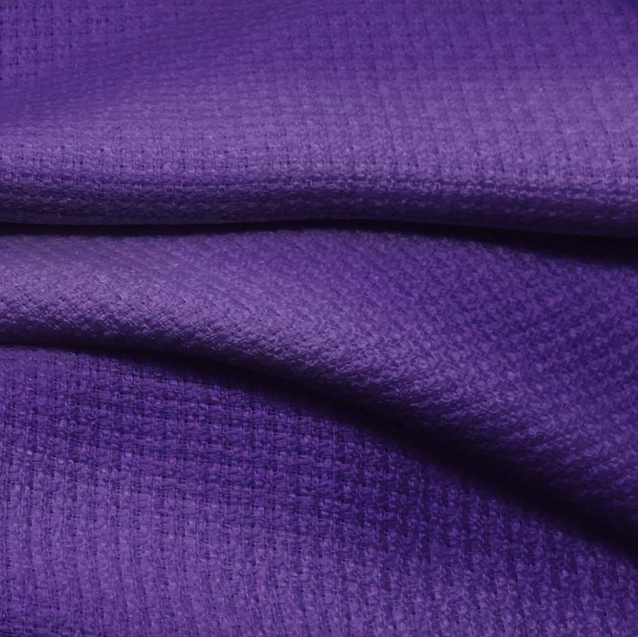 La tela base de esta prenda es Tweed - Chanel, un tweed de poliéster con un gramaje de 420 gr/m2 y una anchura de 150 cm. El color liso impreso en la tela es un Morado Monstruo con una combinación de tintas de Cyan (89), Magenta (100), Yellow (16) y Black (5) que se traduce en un CMYK de 89 100 16 5. Este matiz de morado se caracteriza por ser vibrante y audaz, con una esencia misteriosa y enigmática que sugiere un aire de sofisticación. Combina especialmente bien con grises y negros, así como con tonos más claros de morado e incluso azules oscuros.