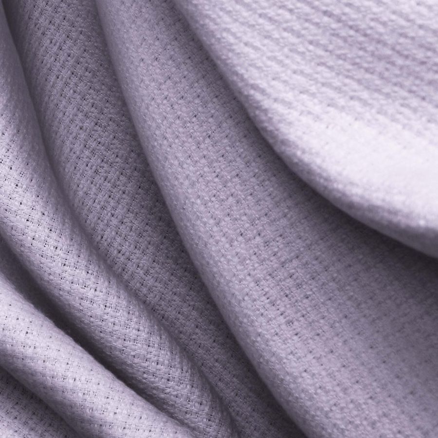 El color púrpura se asocia al misterio, la sabiduría y la espiritualidad, debido a su relación con lo divino y lo metafísico. Este color añade un toque de elegancia y sofisticación a cualquier prenda que lo luzca. En lo que respecta a las características generales, la tela base presenta una textura rígida al tacto y un aspecto visual muy trabajado debido al lánguido de los hilos que la conforman.