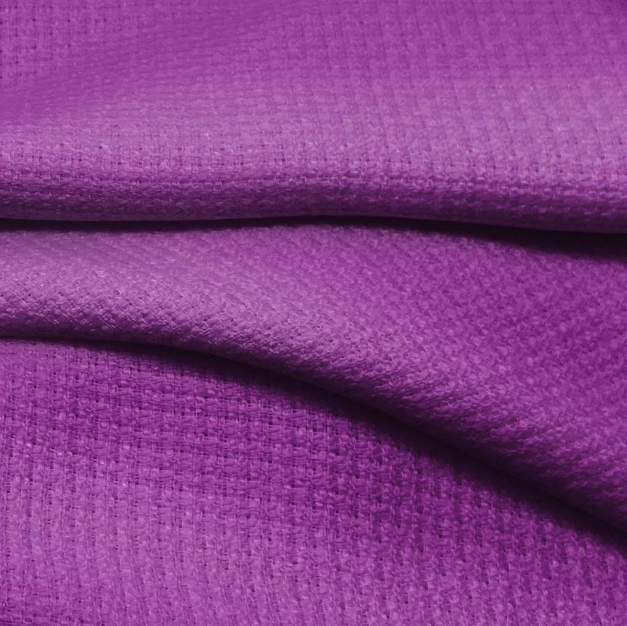 La tela base es Tweed - Chanel, un tejido de poliéster con un gramaje de 420 gr/m2 y una anchura de 150 cm. El color liso impreso es un morado intenso con tonos flor purpura, cuyos valores de CMYK son 56 89 2 0. Este color secundario se asocia con la creatividad y la originalidad, pudiendo ser combinado con otros tonos pasteles o con tonalidades más fuertes como el negro o el rojo oscuro.