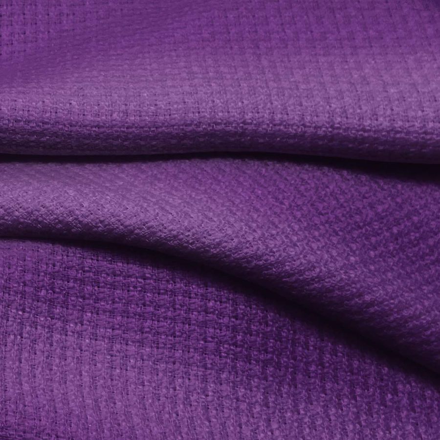 La tela base, Tweed - Chanel, es un tejido de tweed compuesto al 100% de poliéster con un gramaje de 420gr/m2 y un ancho de 150 cm. El color liso impreso en la tela es morado oscuro con CMYK de 76 96 22 12. Este color se presenta como un color profundo y misterioso que se asemeja a la oscuridad de la noche. Simbólicamente representa la sabiduría, la magia y la creatividad.