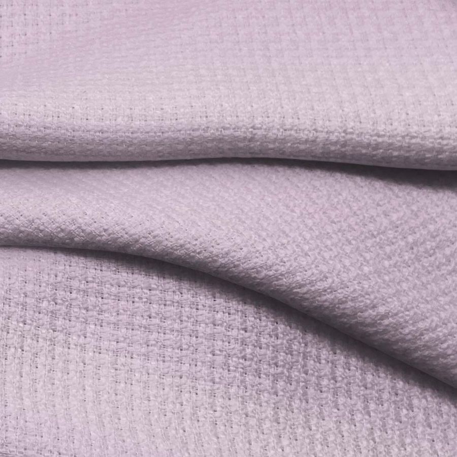 La tela base de este tejido es el Tweed - Chanel, de composición 100% poliéster, con un gramaje de 420 gr/m2 y un ancho de 150 cm. El color liso impreso es Morado Bígaro, cuyo perfil CMYK es 13 27 4 0, lo que refleja una predominancia del magenta. Este color se caracteriza por ser elegante, sofisticado y misterioso, evocando la magia y la creatividad. Combina bien con colores como el blanco, negro, gris, plateado y dorado. Cabe destacar que este tejido está impreso con el color liso a una sola cara por impresión digital textil, lo que significa que no es un tejido tintado sino impreso por una sola cara.