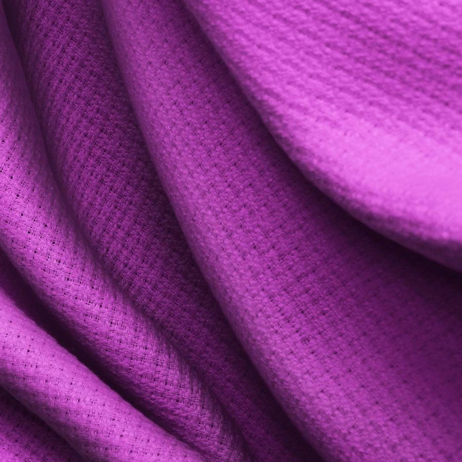La tela base es Tweed - Chanel, compuesta por 100% poliéster y tiene un gramaje de 420 gr/m2. El ancho de la tela es de 150 cm y su color liso impreso es Morado o Púrpura, con una combinación de tinta Cyan de 58, Magenta de 95, Yellow de 2 y Black de 0, lo que nos proporciona la siguiente combinación CMYK: 58 95 2 0. Este color liso impreso combina perfectamente con tonos crema, blanco, gris, negro y rosa.