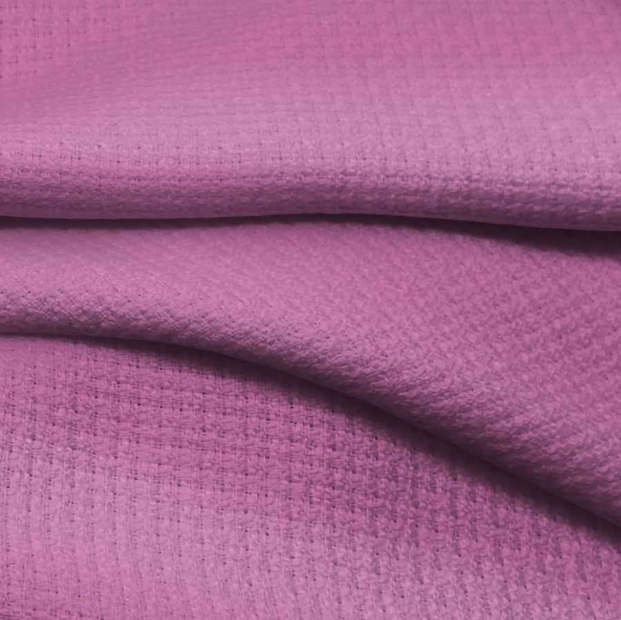 La tela base Tweed - Chanel es un tejido de tipo tweed con una composición del 100% de poliéster, con un gramaje de 420 gr/m2 y un ancho de 150 cm. Su color liso impreso es un hermoso morado ciruela rosa, que se caracteriza por tener una tinta cyan del 25%, una tinta magenta del 67%, una tinta yellow del 7% y una tinta black del 0%, lo que se traduce en un CMYK de 25 67 7 0. Este color secundario es elegante y sofisticado, y combina perfectamente con otros colores como el beige, el dorado y el negro.
