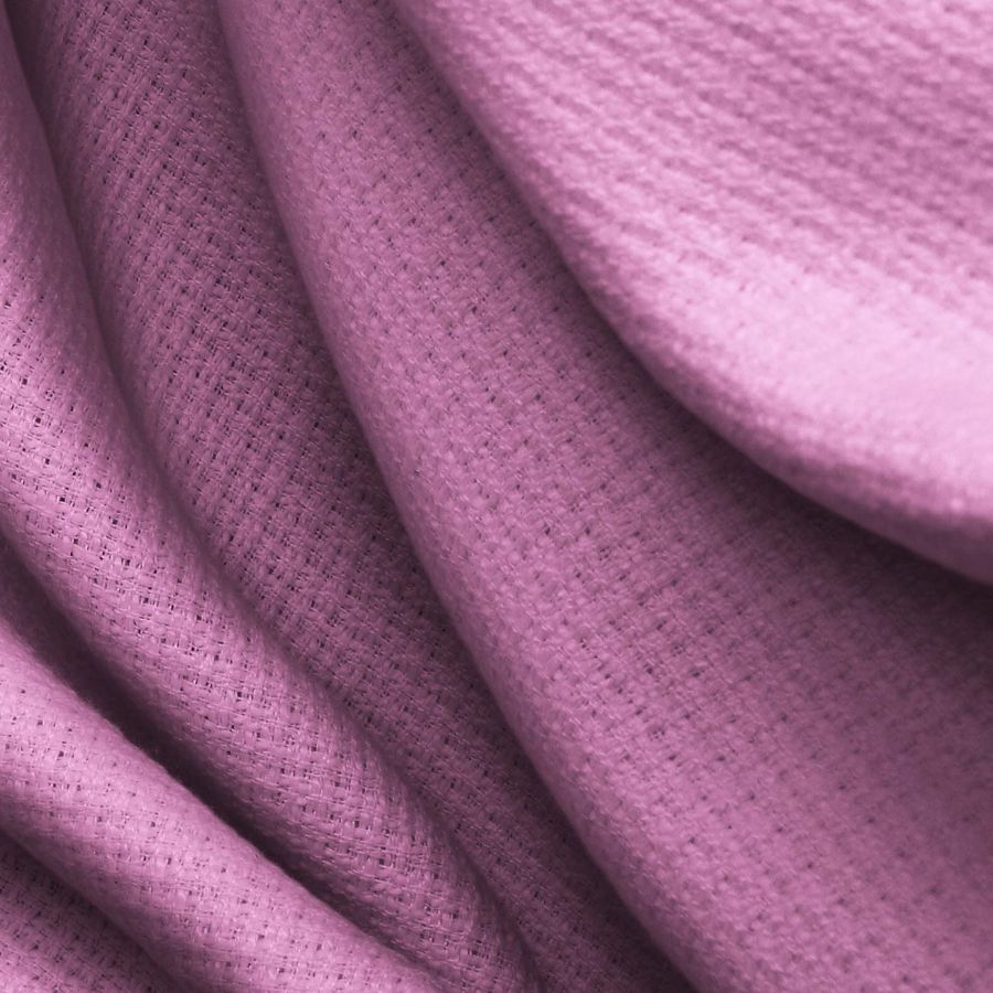 La tela base, Tweed - Chanel, está compuesta al 100% de poliéster, con un gramaje de 420 gr/m2 y un ancho de 150 cm. El color liso impreso es un delicado "Rosa tímido" con un contenido de CMYK de 18-60-4-0, lo que significa que tiene un bajo nivel de cian y amarillo, pero un alto nivel de magenta. Este color secundario es símbolo de delicadeza, dulzura y feminidad, y combina en particular con tonos pastel como el lila o el azul claro.