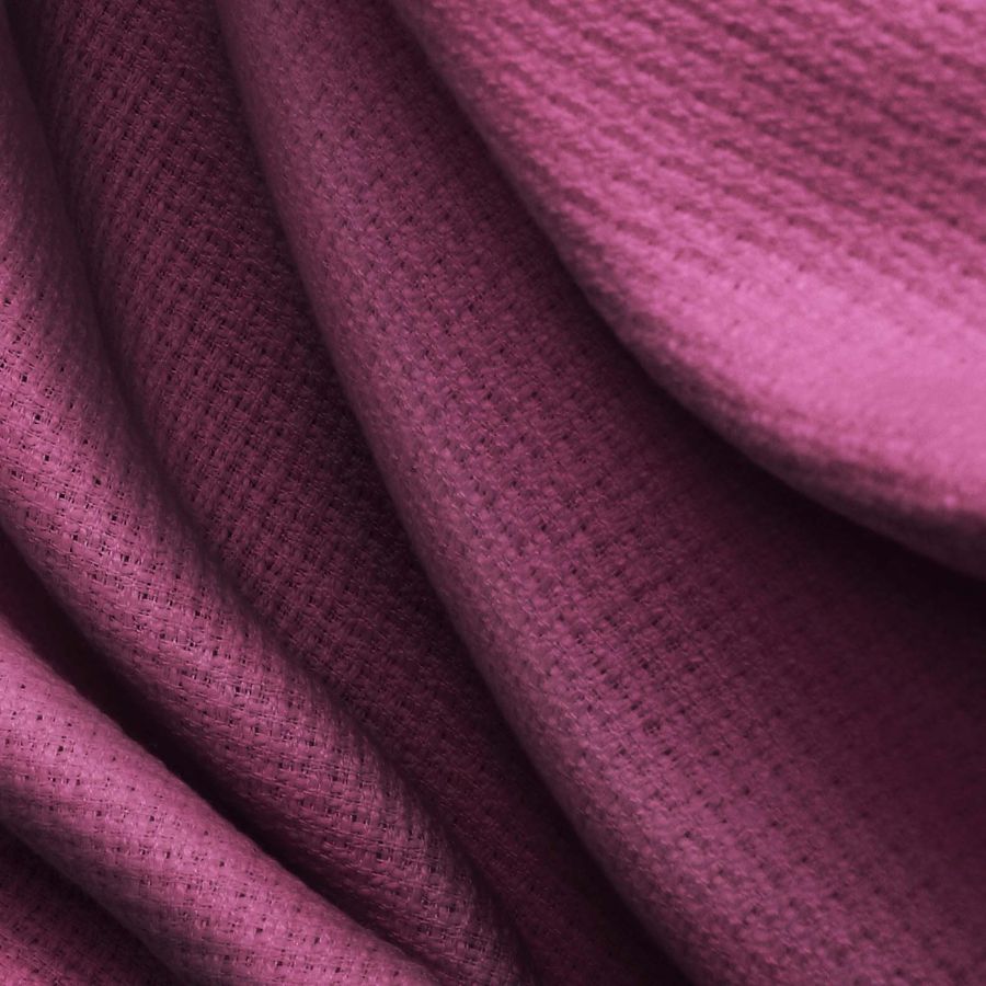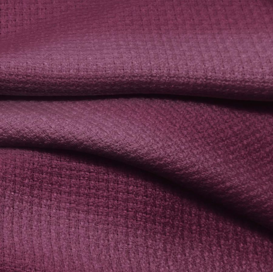La tela base es el Tweed - Chanel, con una composición del 100% POLIÉSTER y un gramaje de 420 gr/m2. El color liso impreso es de un tono Morado Berenjena con un CMYK de 50 87 39 47, lo que indica un color intenso y vibrante en la tela. El color secundario de la tela es un tono de rosa oscuro, lo que aporta un matiz femenino y sofisticado a la tela. Esta combinación de colores funciona muy bien con tonos neutros como el blanco y el gris.