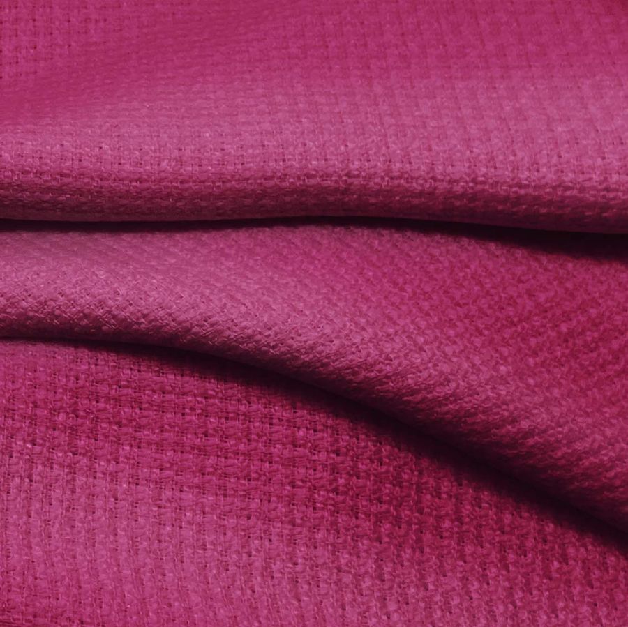 La tela base es un Tweed de composición 100% poliéster con un gramaje de 420 gr/m2 y un ancho de 150 cm. Su color liso impreso es rojo con tonalidades de rosa quemado, cuyas tintas CMYK son: 30 95 33 24. Este color es representativo de la pasión, la sensualidad y el amor, combinando tonos rojos fuertes con suavidad y dulzura. Se combina perfectamente con colores neutros como el blanco, el negro y el gris, así como con tonos marrones y dorados.