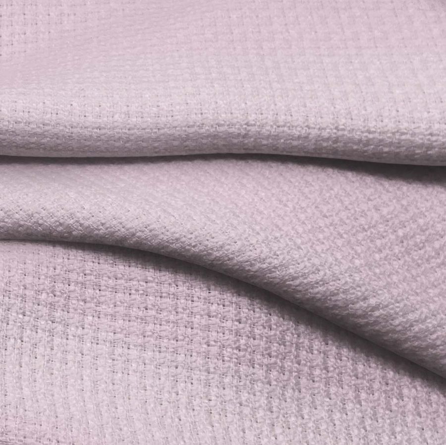 La tela base de este tejido es el Tweed - Chanel, de composición 100% Poliéster con un gramaje de 420gr/m2 y un ancho de 150cm. El color liso impreso es un rosa/rosa rosada, con un CMYK de 7 24 7 0, lo que indica una tonalidad cálida y suave con baja saturación. Este color secundario combina perfectamente con tonalidades neutras como el gris claro o beige, así como con tonos pastel como el verde menta o el azul cielo. La tela está impresa con el color liso a una sola cara por impresión digital textil, lo que significa que la intensidad del color y su resolución son excelentes, y que no hay desgaste o transferencia del color al contacto con otros objetos.