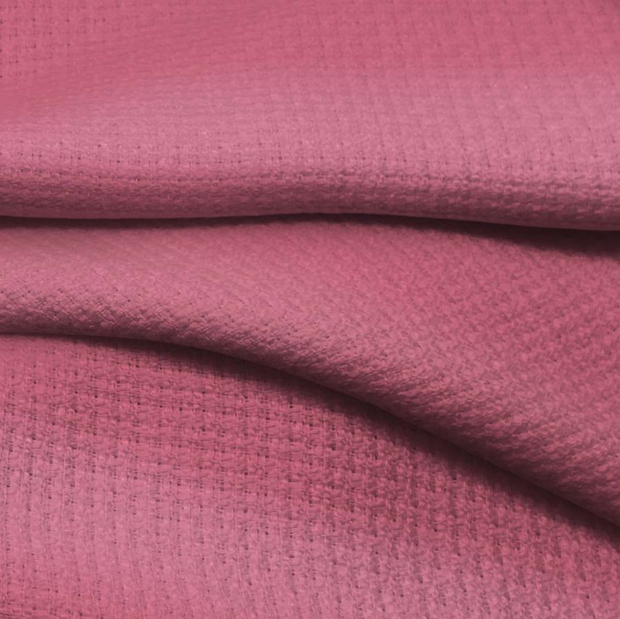 Esta tela base y su color tienen características que las hacen perfectas para uso en moda y decoración. El tweed proporciona una textura rígida al tacto, lo que lo hace una elección popular para chaquetas, abrigos y faldas. El color rosa rubor aporta un toque de delicadeza y coquetería, lo que lo convierte en una opción perfecta para vestidos y prendas de ropa más femeninas.