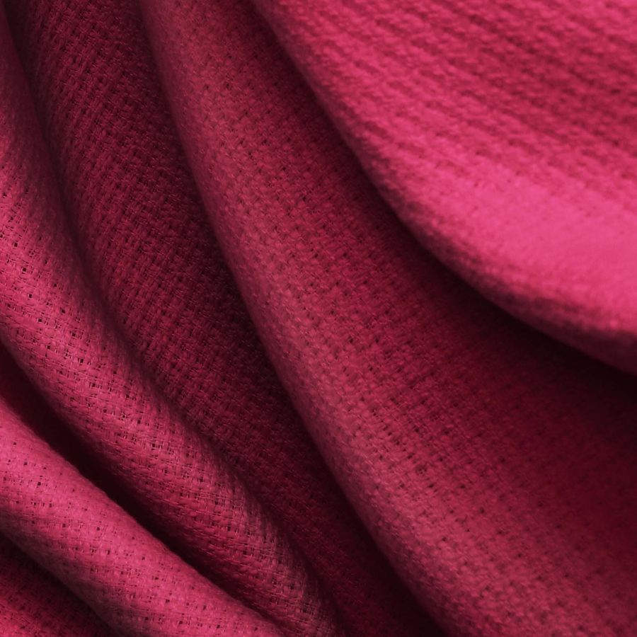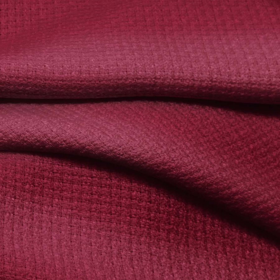 La tela base es el Tweed-Chanel, compuesto al 100% de poliéster, con un gramaje de 420 gr/m2 y un ancho de 150 cm. Su color liso impreso es un Rojo Pastel de Ciruela, con una mezcla de tinta cyan del 32%, magenta del 100%, yellow del 62% y black del 45%, representado en el código CMYK 32 100 62 45. Este tono secundario tiene una simbología profunda que combina la pasión del rojo con la tranquilidad del tono pastel. Podría combinar muy bien con grises oscuros y negros para un look elegante y sofisticado.
