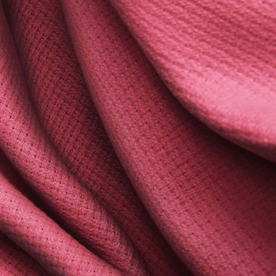 Es importante señalar que el tejido está impreso con el color liso a una sola cara, mediante impresión digital textil, lo que permite crear diseños muy originales. Las características generales de la tela base son su textura rígida, que le da cuerpo y estructura al tejido, lo que lo hace ideal para confeccionar chaquetas, blazers, abrigos, faldas, vestidos, cazadoras, chalecos y otros productos de moda. Además, también se puede usar en decoración, tanto en cojines para el salón, dormitorio o cocina, como en cojines para exteriores.