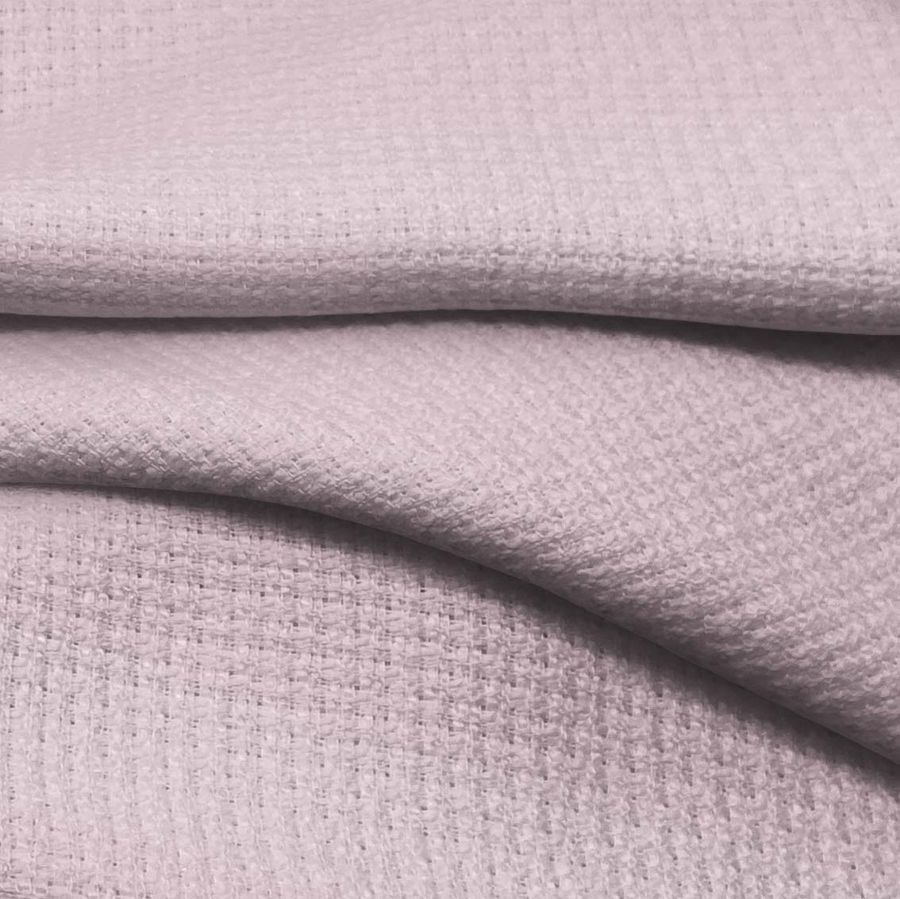 La tela base para esta impresión es de tipo Tweed Chanel, con una composición del 100% de poliéster y un gramaje de 420 gr/m2. Su ancho es de 150 cm y su cuidado se limita a un máximo de 30ºC y limpieza en seco, mientras que se evita el uso de blanqueador y no se permite secadora. El color liso impreso es una rosa rosada con una tinta cyan de 8, magenta de 25, amarillo de 9 y negro de 0, mostrando un tono suave y cálido que puede combinarse con grises y blancos para un estilo elegante o con tonos pastel y neutros como complementarios. Este tejido ha sido impreso mediante sublimación en una sola cara y aporta una textura rígida en su tacto.