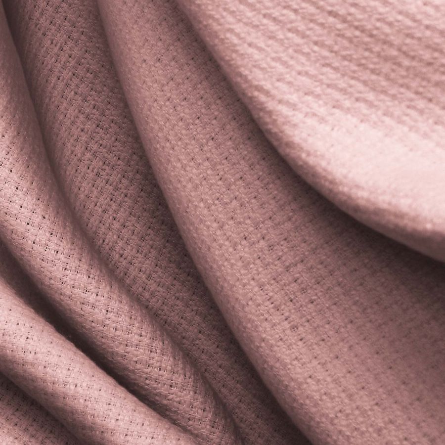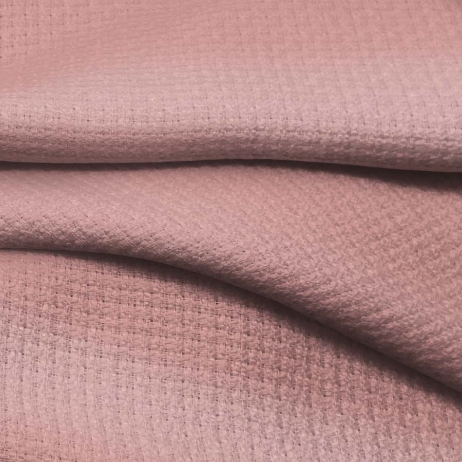 La tela base es un Tweed Chanel de poliéster, con un gramaje de 420 gr/m2 y un ancho de 150 cm. Su color liso impreso es rosa-marrón con un CMYK: 13 46 33 2. El color rosa-marrón es un color terroso y natural que evoca la tierra y la naturaleza, y puede combinarse muy bien con tonos neutros como el marrón y el beige o con tonos más vivos como el verde o el azul cielo. La tela está impresa a una sola cara por impresión digital textil.