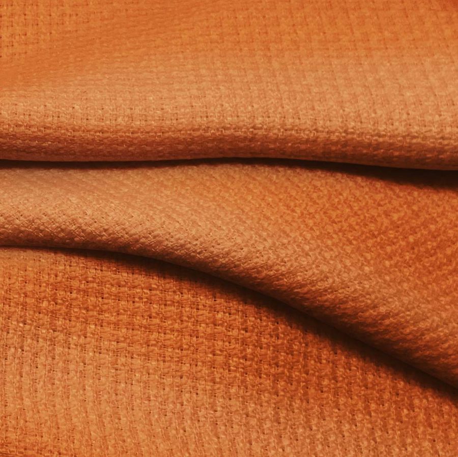 La Tweed-Chanel es una tela compuesta al 100% por poliéster, con un gramaje de 420 gr/m2 y un ancho de 150 cm. El color liso impreso en naranja zorro rojo se compone de una mezcla de cian, magenta, amarillo y negro en porcentajes de 16, 69, 92 y 5, respectivamente. El color secundario, zorro rojo, se asocia con la fuerza, la energía y la determinación, y se puede combinar con otros colores como negro, beige, marrón y verde oscuro para crear outfits atrevidos y sofisticados. Es importante destacar que el tejido está impreso con el color liso a una sola cara por impresión digital textil, lo que significa que no es un tejido tintado sino impreso por una sola cara.