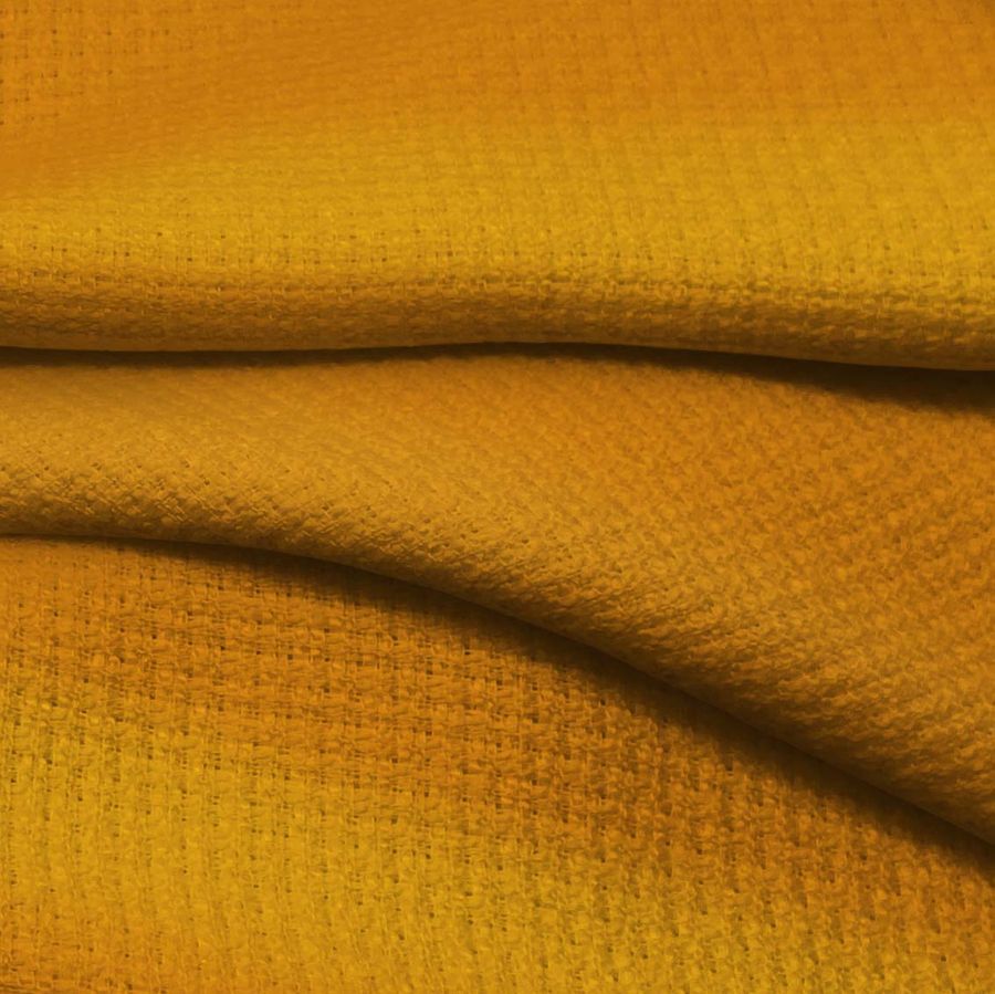La tela base es el Tweed - Chanel, un tejido de poliéster con un gramaje de 420 gr/m2 y un ancho de 150 cm. El color liso impreso es el Naranja Zanahoria, con un CMYK de 15 56 100 4. Este color es intenso y vibrante, reflejando la vitalidad y energía de la naturaleza. También simboliza la creatividad y la originalidad, añadiendo una sensación de frescura y espontaneidad a cualquier prenda o accesorio confeccionado con este tejido. El naranja zanahoria combina bien con colores como el gris, el marrón o el beige, y especialmente con el azul, lo que crea contraste y equilibrio.