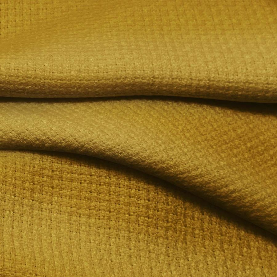 La tela base es un Tweed - Chanel compuesto al 100% de poliéster, con un gramaje de 420 gr/m2 y un ancho de 150 cm. El color liso impreso en la tela es un Marron Madera, con una combinación de tinta cyan de 30, magenta de 46, amarillo de 100 y negro de 25, representado por el CMYK 30 46 100 25. Este color muestra una textura rígida que simboliza la estabilidad y la seguridad. El Marron Madera combina especialmente bien con tonos beige, marrón claro, blanco y negro. La tela está impresa con el color liso a una sola cara por impresión digital textil, lo que no altera la textura de la tela, ya que no se trata de un tejido tintado sino impreso.