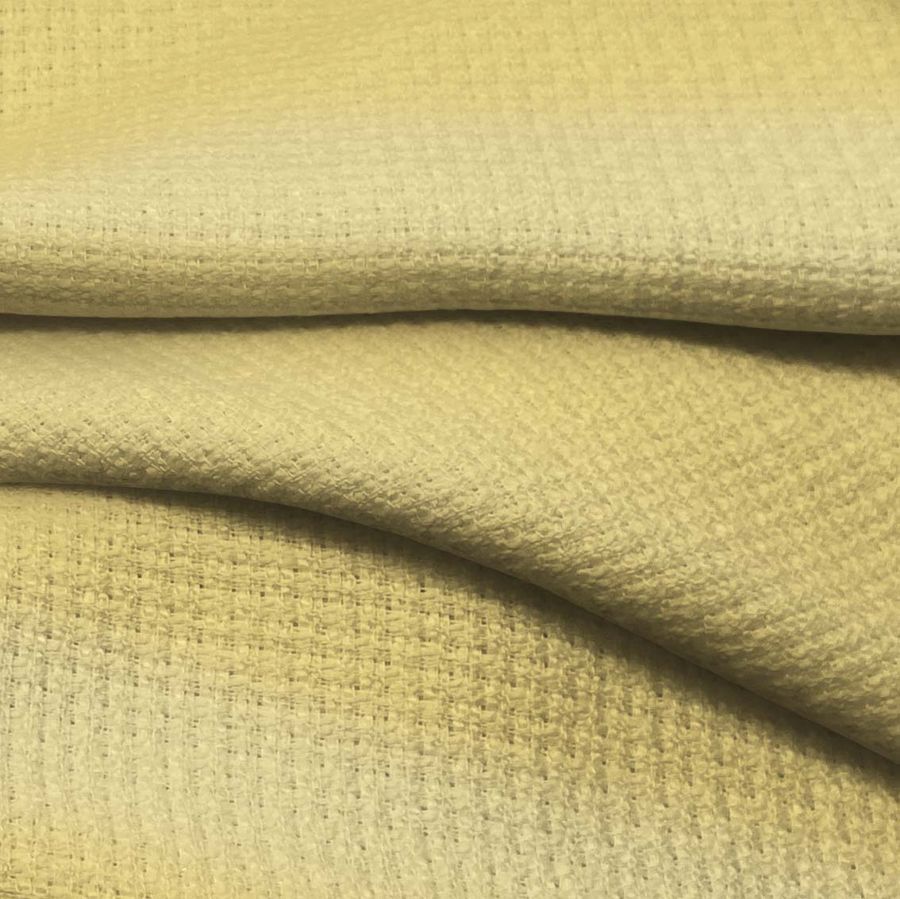 La tela base Tweed - Chanel es un tejido de tweed compuesto por 100% poliéster, con un gramaje de 420 gr/m2 y un ancho de 150 cm. El color liso impreso es Amarillo sol, con un contenido de CMYK 7 14 58 0. Este color simboliza la energía, el optimismo y la alegría, y se combina perfectamente con colores neutros como el blanco, el gris o el negro.