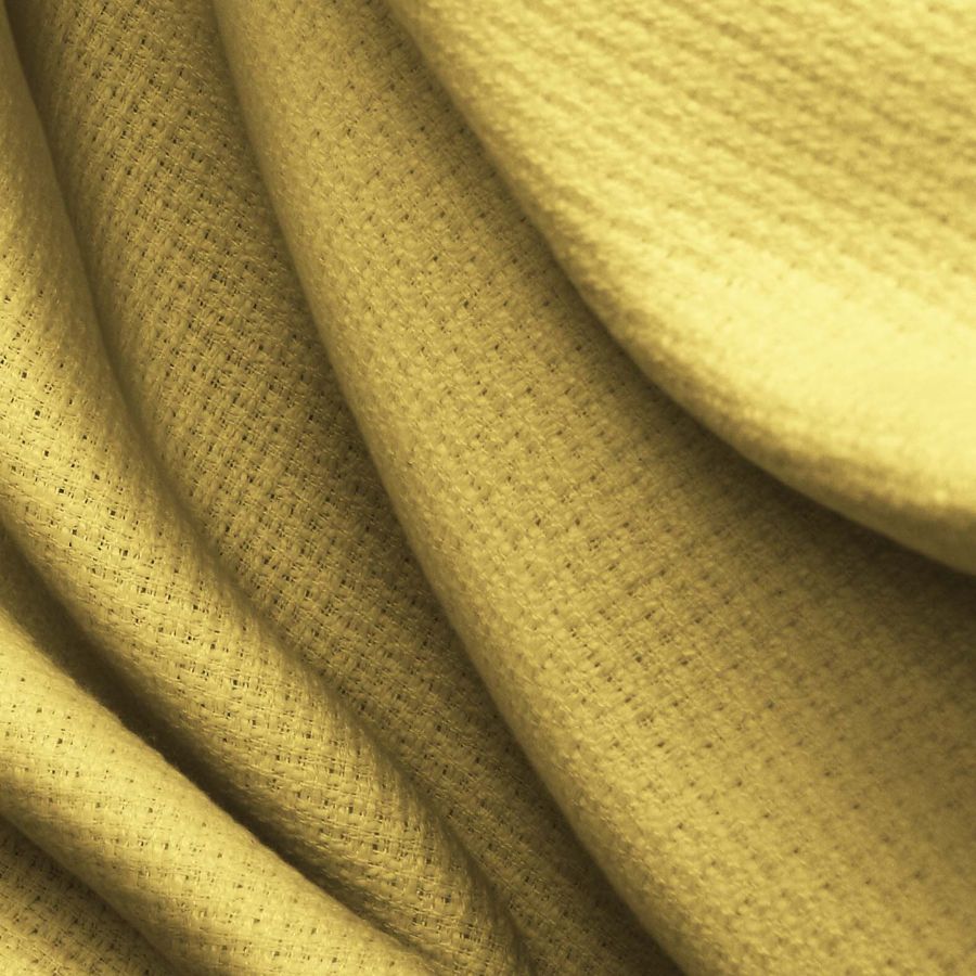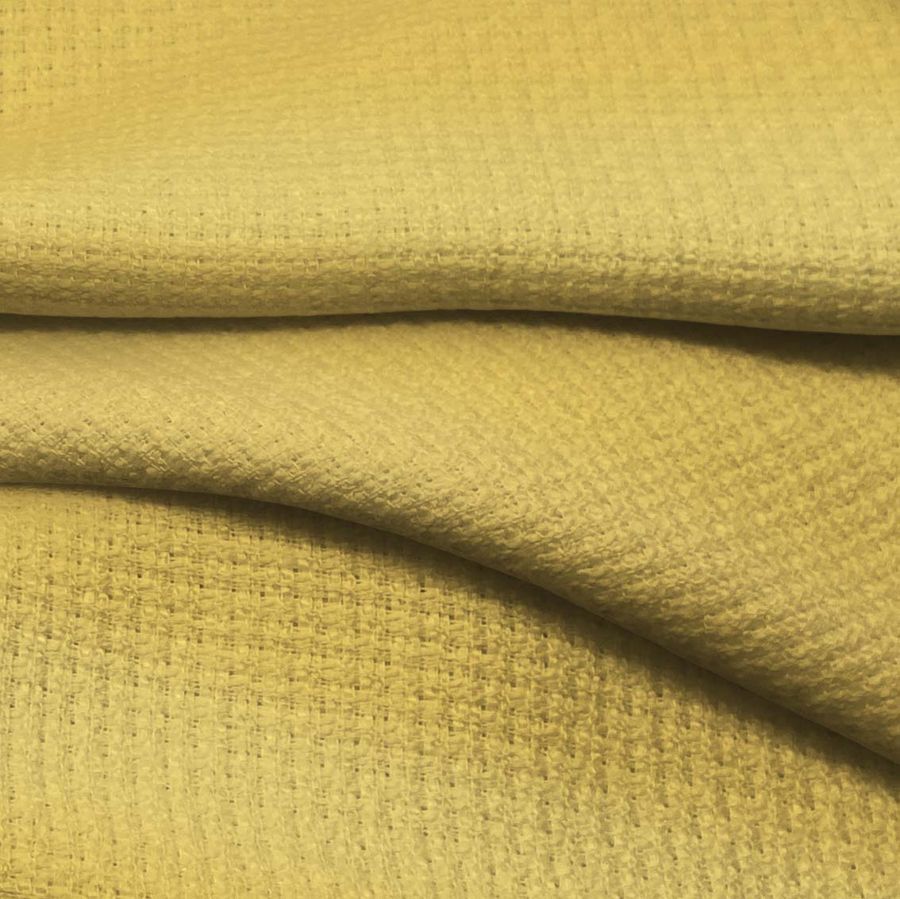 La tela base es Tweed - Chanel, con una composición de 100% poliéster y un gramaje de 420 gr/m2. Este tejido de textura rígida presenta un hermoso color liso impreso, en un tono amarillo mostaza, con un CMYK de 9,22,71,1. Este color secundario transmite calidez y confort, excelente para conjuntos de moda de otoño e invierno. Combina perfectamente con tonos marrones, verdes e incluso rojos oscuros. Se imprime a una sola cara por impresión digital textil.