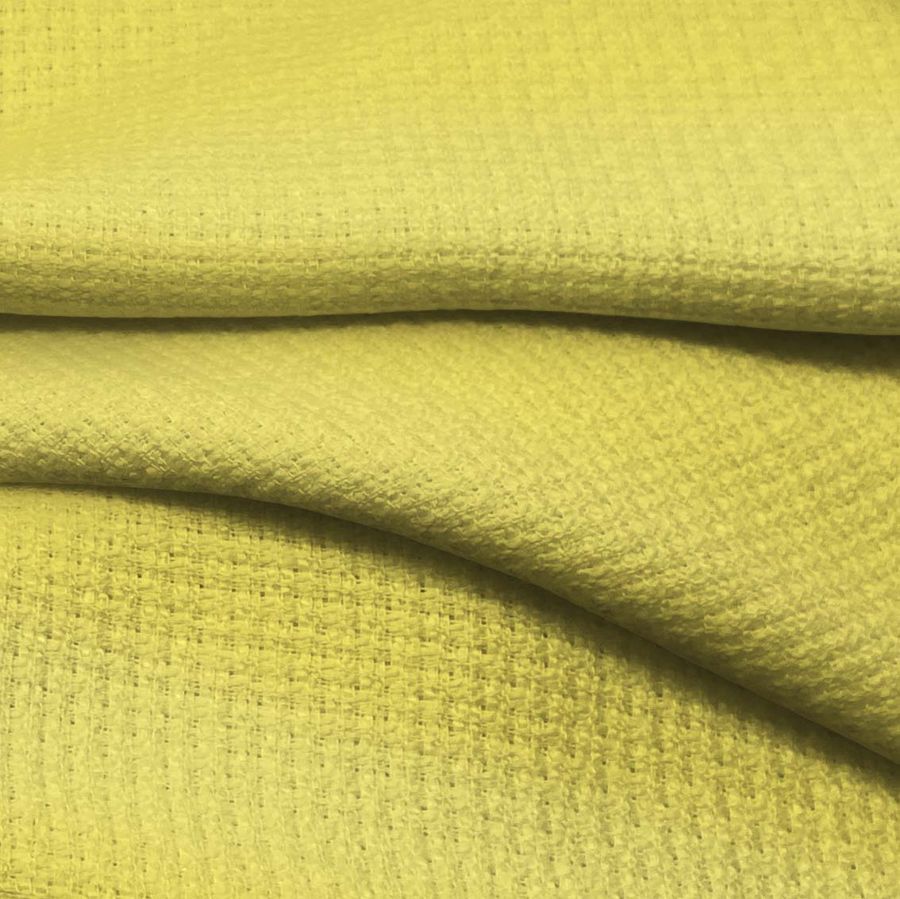 La tela base Tweed - Chanel, de composición 100% POLIÉSTER, presenta un gramaje de 420 gr/m2 y una anchura de 150 cm. El color liso impreso en esta tela es un Amarillo Maíz, con las siguientes especificaciones de CMYK: 5 4 72 0. Este color aporta una sensación de vitalidad, energía y optimismo, simbolizando alegría y creatividad. Combina perfectamente con tonos neutros como el blanco, negro y tonos tierra, aportando así una sensación de equilibrio y armonía.
