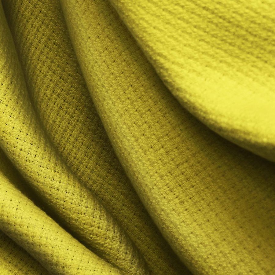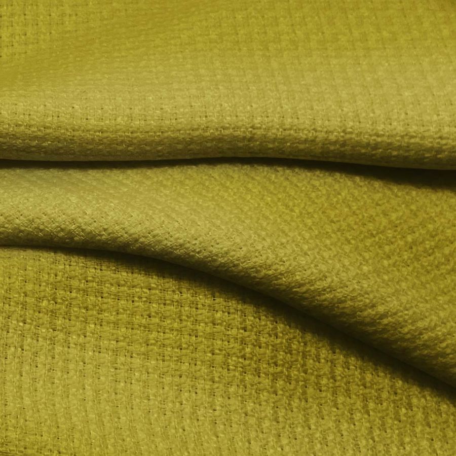 La tela base es un tweed de poliéster de 420 gr/m2, de textura rígida y ancho de 150 cm. El color liso impreso es un verde olivo con CMYK de 40-35-100-20, que combina muy bien con tonos tierra y beige. El tejido está impreso con el color liso a una sola cara por impresión digital textil.