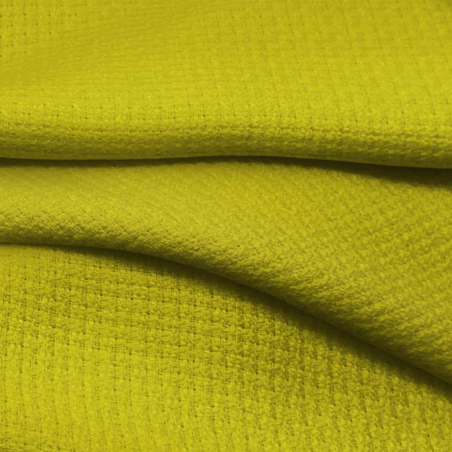 La tela base, Tweed - Chanel, es de tipo tweed y está compuesta al 100% de poliéster, con un gramaje de 420 gr/m2 y un ancho de 150 cm. Su color liso impreso es Verde DarkKhaki con un CMYK de 29 18 97 4. Este color secundario simboliza la naturaleza y la frescura, y técnicamente se caracteriza por tener una tonalidad oscura y cálida. Combina perfectamente con otros colores naturales como el beige, amarillo y marrón, en particular con tonos terracota y naranjas suaves.