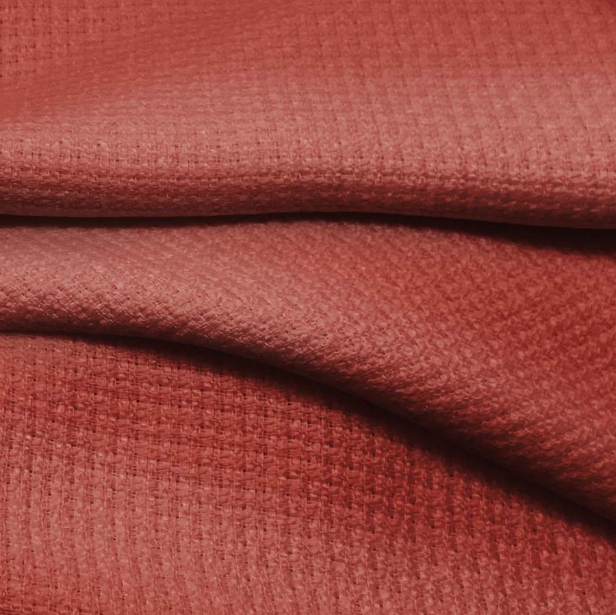 La tela base es un Tweed - Chanel 100% POLIÉSTER con un gramaje de 420 gr/m2. El color liso impreso es Rojo Granate con un CMYK de 27 80 73 24. Es un tono intenso y cálido que combina muy bien con tonos beige, blancos y dorados, aportando elegancia y sofisticación. El tejido está impreso con el color liso a una sola cara por impresión digital textil.