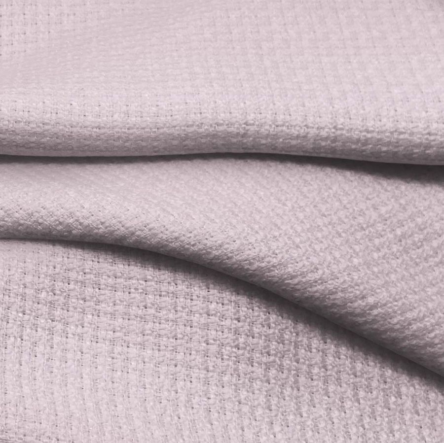 La tela base Tweed - Chanel es una tela de Tweed compuesta por 100% poliéster, con un gramaje de 420 gr/m2 y un ancho de 150 cm. El color liso impreso en la tela es rosa rosada, con tinta cyan del 6, magenta del 20, yellow del 7 y black del 0, y un CMYK de 6 20 7 0. Este color secundario simboliza la delicadeza, el romanticismo y la sensibilidad. Esta tonalidad se combina especialmente bien con tonalidades blancas, grises, doradas, verdes, así como algunas variaciones de marrones y rojos.