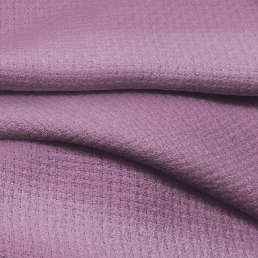 La tela base es el Tweed - Chanel, compuesta al 100% de poliéster y con un peso de 420 gr/m2, y con un ancho de 150 cm. Su color liso impreso es un morado de orquídea mediana, con un CMYK de 33 56 16 2. Este color secundario es simbólicamente un tono místico y espiritual, representando la conexión con la intuición y la creatividad. Técnicamente, los tonos púrpuras se utilizan para aportar profundidad y sutileza a los diseños. El color de orquídea mediana combina especialmente bien con tonos grises, verdes y azules oscuros. Además, es importante destacar que el tejido está impreso con el color liso a una sola cara por impresión digital textil.