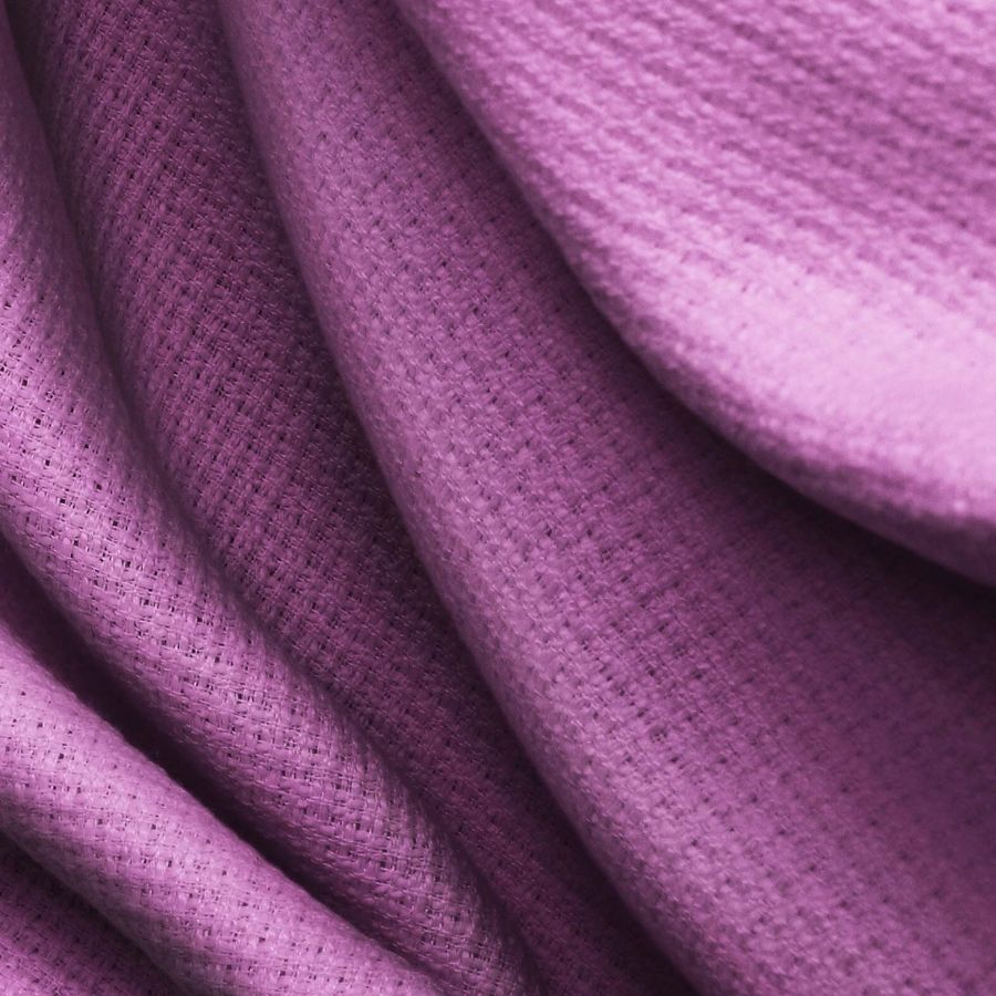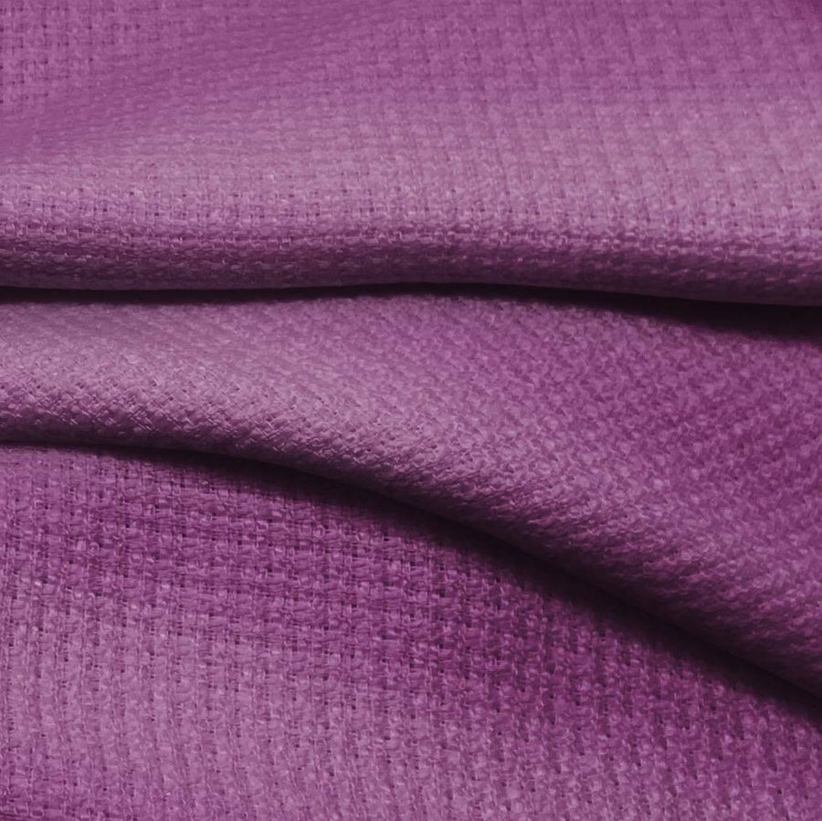 La tela base Tweed - Chanel es un tejido tweed de poliéster con un gramaje de 420 gr/m2 y un ancho de 150 cm. Su color liso impreso es Morado,Viola Viola, el cual está compuesto por una mezcla de tintas de cian, magenta, amarillo y negro con una proporción CMYK de 54 78 26 11. Este color secundario evoca una sensación de misterio y sofisticación, simbolizando la sabiduría y la espiritualidad. Además, se combina bien con tonos tierras, grises y algunos verdes.