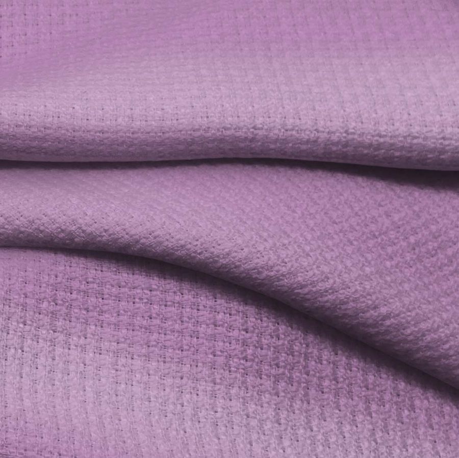 La tela base es el Tweed - Chanel, un tejido de tweed 100% poliéster con un gramaje de 420 gr/m2 y un ancho de 150 cm. El color liso impreso es un hermoso dragón púrpura con una mezcla de tinta cian de 33, tinta magenta de 53, tinta amarilla de 6 y tinta negra de 0, dando como resultado un CMYK de 33 53 6 0. Este color representa un equilibrio perfecto entre la energía y la sabiduría, y simboliza la realeza y la creatividad. El morado se complementa bien con colores como el rosa, el gris y el plateado, lo que lo hace ideal para combinaciones más elegantes y formales.