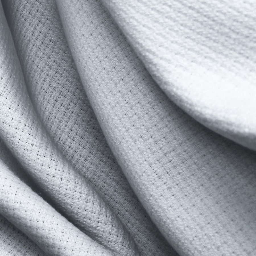 La tela base, Tweed - Chanel, es de tipo tweed y está compuesta por 100% poliéster. Su gramaje es de 420 gr/m2 y su ancho es de 150cm. El color liso impreso es azul celeste, y sus tintas Cyan, Magenta y Yellow son de 16, 6 y 2 respectivamente, con 0 de tinta black, lo que produce un tono suave y elegante que combina muy bien con grises y tonos claros.