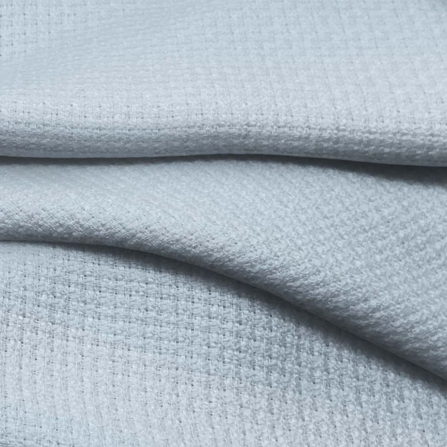 La Tweed - Chanel es una tela base de Tweed, compuesta por 100% de poliéster y con un gramaje de 420 gr/m2 y un ancho de 150 cm. El color liso impreso en esta tela es el Azul del Golfo, una mezcla de cian, magenta y amarillo en una proporción de 26 7 5 0 en su modelo de impresión CMYK. Este color se puede considerar un tono verdoso o turquesa, y armoniza muy bien con otros tonos de la familia del verde, como el olive o el chartreuse.