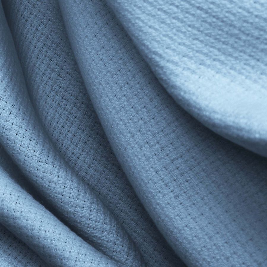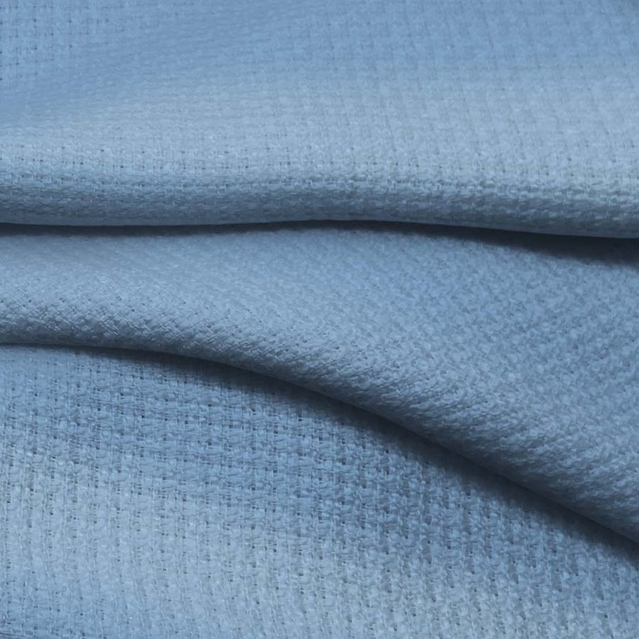 La tela base de nuestro tejido es Tweed - Chanel, compuesta en un 100% de poliéster y con un gramaje de 420 gr/m2. Su ancho es de 150 cm y presenta un color liso impreso en tonalidad Azul vaquero, con una proporción de tinta cyan de 56, magenta de 29, yellow de 11 y black de 1 en el CMYK.