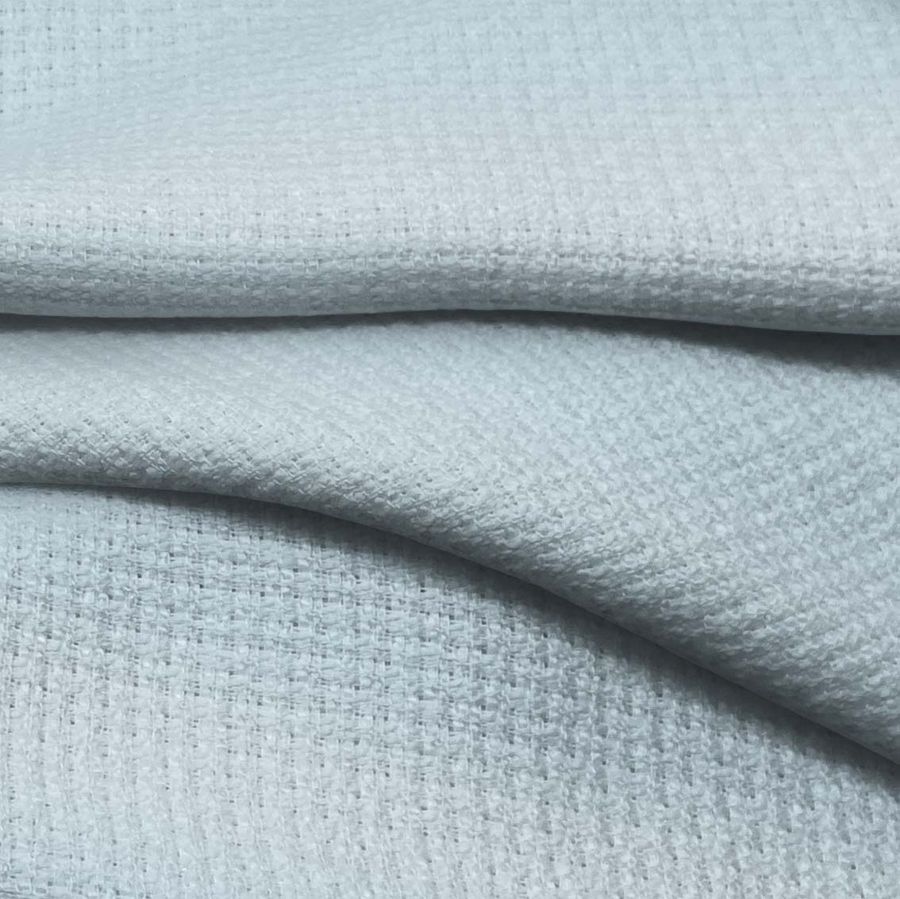 La tela base Tweed - Chanel es un tejido de Tweed de 420 gr/m2 con una composición de 100% poliéster y un ancho de 150 cm. El color liso impreso en esta tela es Azul del Golfo, con un CMYK de 25, 4, 8, 0. Este tono de azul refleja la tranquilidad del mar y la profundidad de los océanos, por lo que se convierte en un color ideal para transmitir serenidad y elegancia. Combinable con tonos blancos, cremas y grises, se convierte en un gran aliado para la moda y la decoración de interiores.