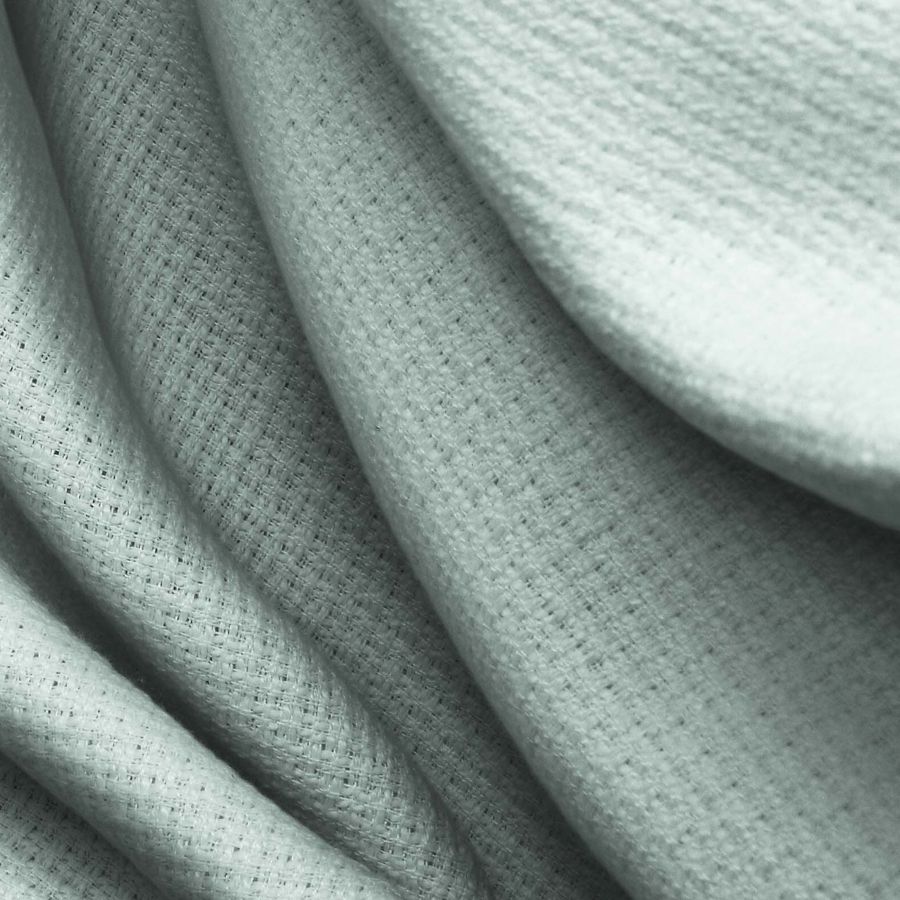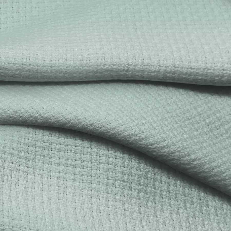 La tela base de este tejido es el Tweed - Chanel, compuesto por 100% poliéster y con un gramaje de 420 gr/m2. El color liso impreso es de un verde-azul único, el cual está compuesto por una tinta cian del 35%, magenta del 10%, amarillo del 26%, y negro del 0%, dando un valor de CMYK de 35 10 26 0. El color secundario es muy distintivo, con un tono parecido a la naturaleza, como el verde de las hojas de los árboles, pero con un sutil matiz azul que le da profundidad. Este color combina perfectamente con tonos marrones, grises, naranjas, y amarillos, lo que lo hace ideal para prendas y accesorios de otoño/invierno.