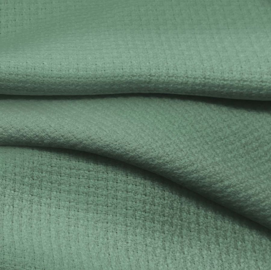 La tela base Tweed - Chanel tiene una composición 100% poliéster con un gramaje de 420 gr/m2 y una anchura de 150 cm. El color liso impreso es verde mar opaco con CMYK de 60 27 55 10. Este color transmite tranquilidad y armonía, recordando al color del mar en calma y a la naturaleza. Además, combina perfectamente con otros colores fríos como el azul, el gris y el morado. Es importante destacar que la tela está impresa con el color liso solo en una cara por impresión digital textil.