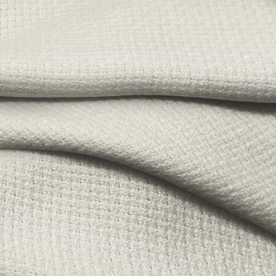 La tela base es el Tweed - Chanel, de 100% poliéster con un gramaje de 420 gr/m2 y un ancho de 150 cm. El color liso impreso es Crudo con detalles en Seda Dorada, CMYK: 6 3 17 0. Este color transmite un aspecto elegante y sofisticado, con una base neutra que se combina perfectamente con otros colores, especialmente con tonos tierra, dorados y beige. Es importante resaltar que el tejido está impreso con el color liso a una sola cara por impresión digital textil, lo que significa que no es un tejido tintado, sino impreso por una sola cara.