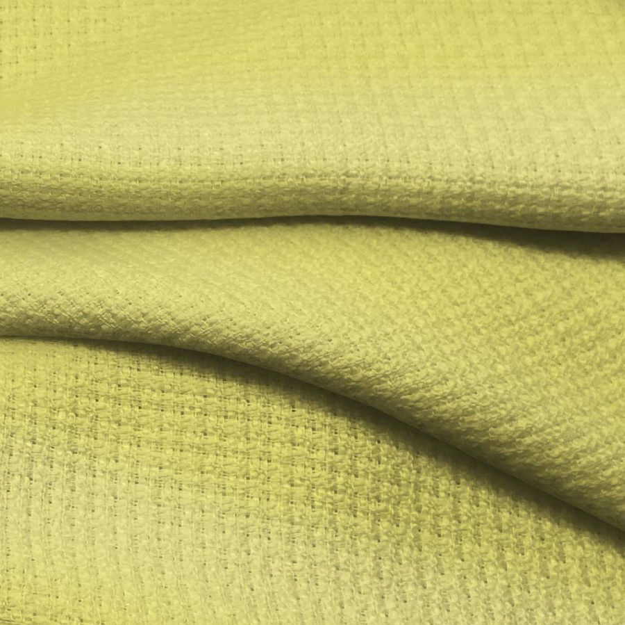 La tela base de este producto es Tweed - Chanel, un tejido de poliéster con una composición del 100%. Su gramaje es de 420 gr/m2 y su ancho de 150 cm. Este Tweed tiene una textura rígida y un tacto que refleja su alta calidad. El color liso impreso es un Amarillo Maíz, con una combinación de tinta de Cyan 11, Magenta 4, Yellow 66 y Black 0, lo que resulta en un tono vibrante y luminoso. Este color se combina especialmente bien con otros tonos cálidos como naranjas y rojos.