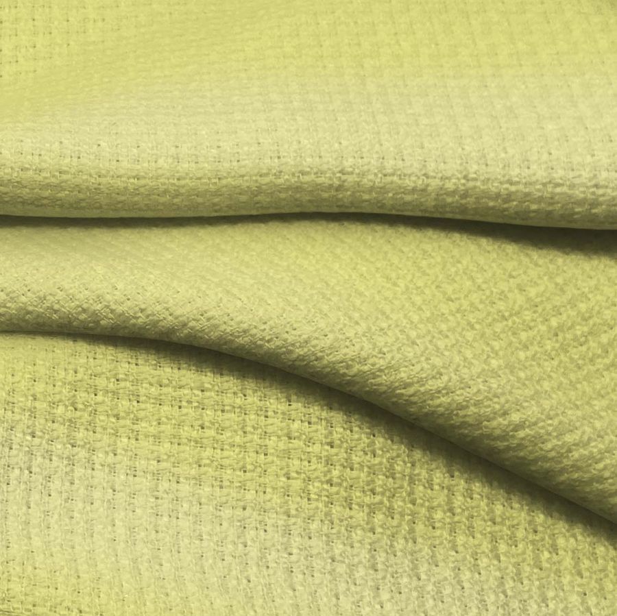 Cabe destacar que el tejido está impreso a una sola cara por impresión digital textil, sin ser un tejido tintado. En cuanto a las características generales, este tejido Tweed se caracteriza por una textura rígida y un tacto robusto. En cuanto al color liso, el amarillo maíz aporta una energía vibrante al tejido base.